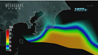 迫る関東南部の地震(あるいはスロースリップ)。 神奈川県南部や房総半島は、南から北上するフィリピン海プレートに押され最大年間3cmずつ北北西に動いている。 関東大震災(1923)で、相模湾から、三浦半島、房総半島間のひずみ(300年前の地震(元禄関東地震、1703)から6m分)が解放された。相模湾岸、三浦半島、房総半島は地震後震源域の上で大きく隆起した。房総半島先端には隆起の跡が過去16回分ある。今まで最短周期200年と思われていたが、最近、別の場所の調査より異なる隆起の間隔があることが分かってきた。(今村、産総研 宍倉) 房総東側沖には9m移動分のひずみがたまり続けていて関東大震災の震源域をはるかに超えている。M8クラス (西村 京大) NHKスペシャル MEGAQUARKV よみがえる関東大震災 首都壊滅・90年目の警告2013 9/18 房総沖 陸側プレートがフィリピン海プレートに対し南東方向にスロースリップを観測