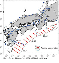 図2.ブロック境界でのブロック間相対運動速度(単位mm/yr). |