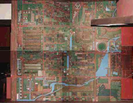 | ブロードエーカーシティーの模型。1934 タリアセンフェロシップによって行われた最初の重要な仕事はブロードエーカーシティーの模型の製作です。 この大きな模型は現在ウィスコンシン州のタリアセンのヒルサイドスタジオの東側のDana galleryの壁面に垂直に置かれています。 模型の大きさ 3.66m x 3.86m 同ビデオクリップ(準備中) |