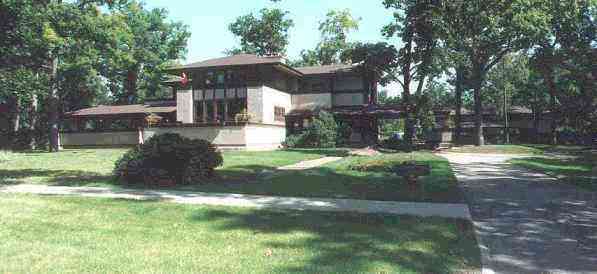 シカゴで活躍した時期。ルイス・サリバンの門下を出てオークパークの自宅に自身の事務所を開いたライトは、プレイリー住宅と呼んだアメリカ中西部の長く低く水平に広がるプレーリー(アメリカ中西部の大草原)にふさわしい水平を強調した住宅を、次々とシカゴ近郊につくりだしました。全部を一体として設計する生命体のような単純性、箱を廃し自由で広々とした室内空間、機械によるアーツアンドクラフト、それぞれの性質を活かす材料の扱い方、などの”有機的建築”の考え方と工夫がこの時期に生まれました。 この時期の仕事がオランダで作品集(Wasmuth Portfolio1910,1911)として発行され、これを見たヨーロッパの建築家たちは大変大きな影響を受け近代建築運動(デスティル、バウハウスなど)が始まりました