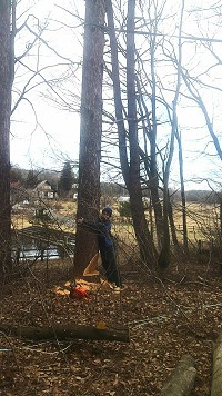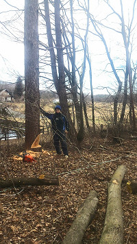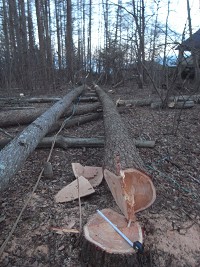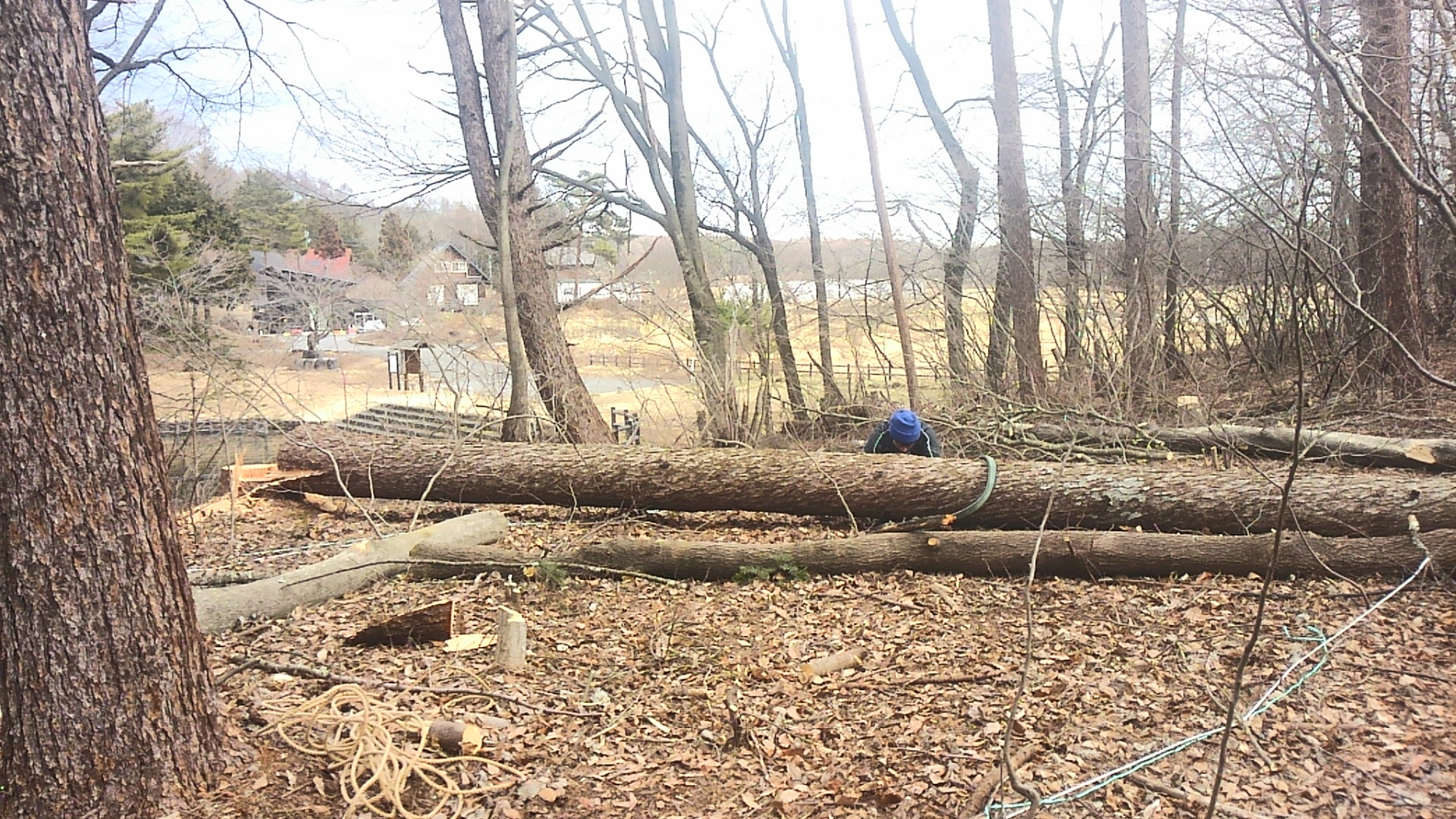 2月末 根が水を上げ始める前に現場に行ってカラマツを伐採した。