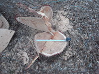 元口45cmの赤身勝ちな良材であった。 しばらく現場に置いておいて次回来た時にカクホンに持って行き、製材してもらう予定である。