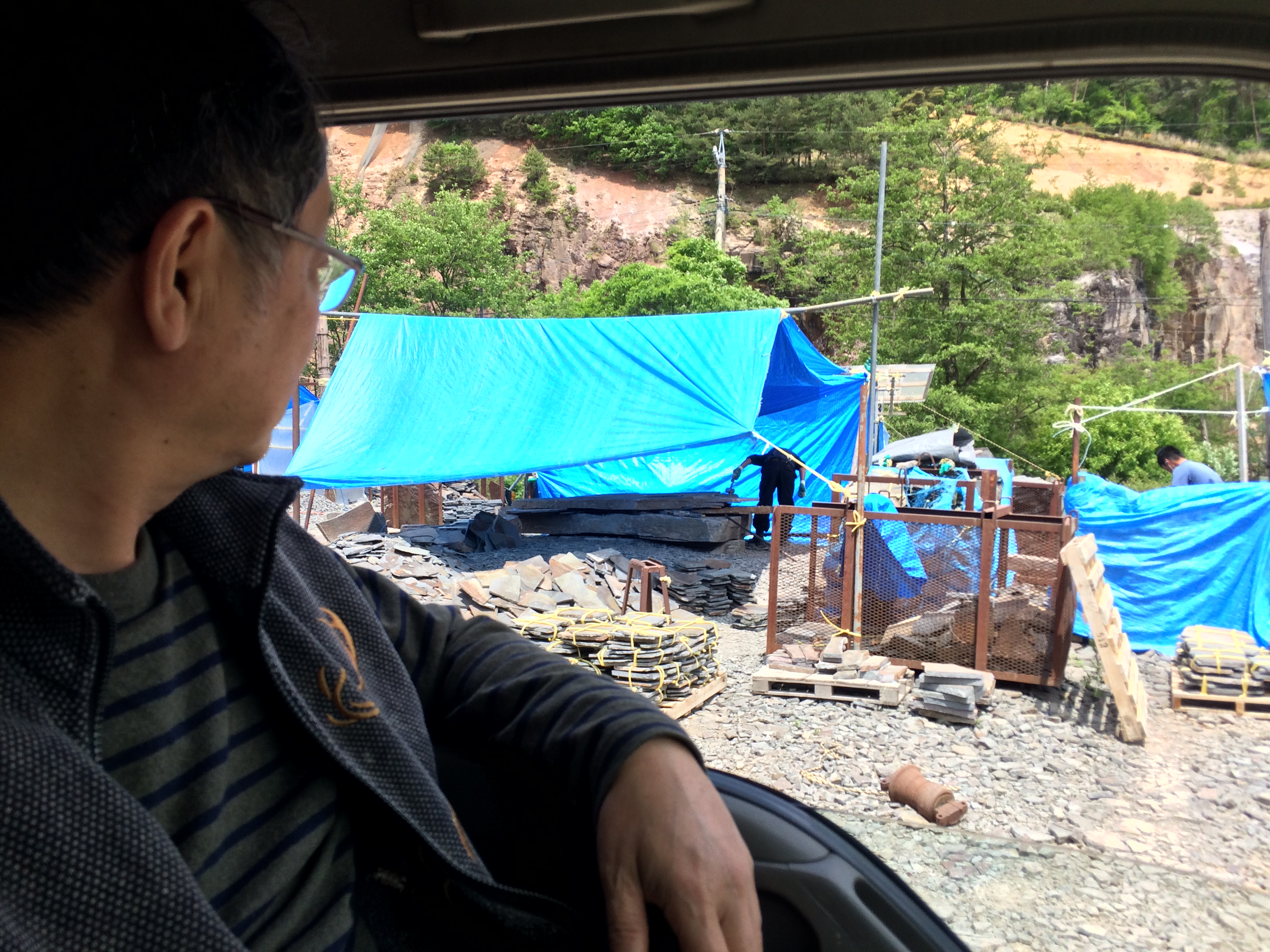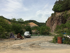 砂利を買いに鉄平石の鉱山に行った。四阿という茅野の北にある鉄平石の谷 |