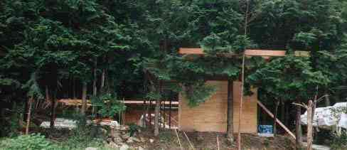 構造材の下ごしらえ 米松(ダグラスファー/ラーチ)のツーバイ材および集成材 (われわれはSPF材は腐りやす いので主要な構造のフレーミングには用いないようにしています。)