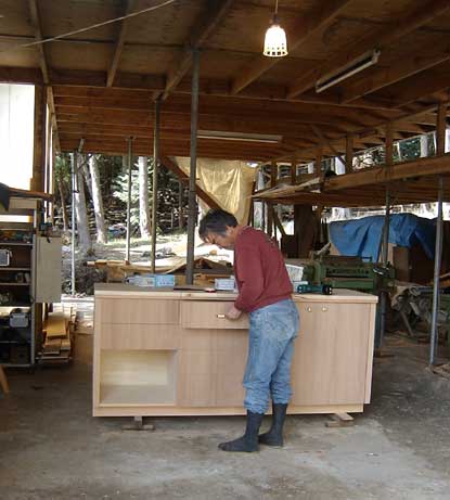 一方、電動工具や接合方法のめざましい発達により木材加工の能率は手道具の時代の5〜10倍にも達しています。そのような機械加工に適したよい細部の設計を用い、その方法を常用してこれに習熟すれば、材質、デザインともに既製品より優れたものを同じ価格かそれ以下でつくることが可能になっています。このような方法は、小規模で間接経費の負担が小さく、材料を自由に入手して使いこなす技術を持ち、一貫したデザインを材料と加工法に則して作り上げることに習熟したわれわれのような特別な職人の集団が得意とすることで、規模の大きい企業や設計だけを行う設計事務所には真似出来ないことだと思います。
