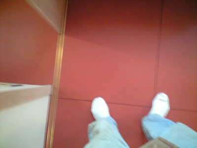 コンクリート床表面にはラバークリート(無機質の塗床材)が施工されて柔らかい層が出来、歩行感がよくなっている。 |