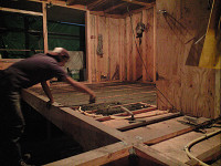 根太間の落とし込み床にポリブテン管を配管します。 |