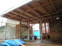 熱を伝え、蓄えるために根太間の落とし込み床に3cmのモルタル層を設けています。 |