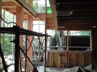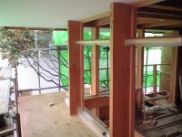 ダイニング吹き抜けとキッチンの腰窓 開口部の内法(建具枠)の取り付けを行っています。 |