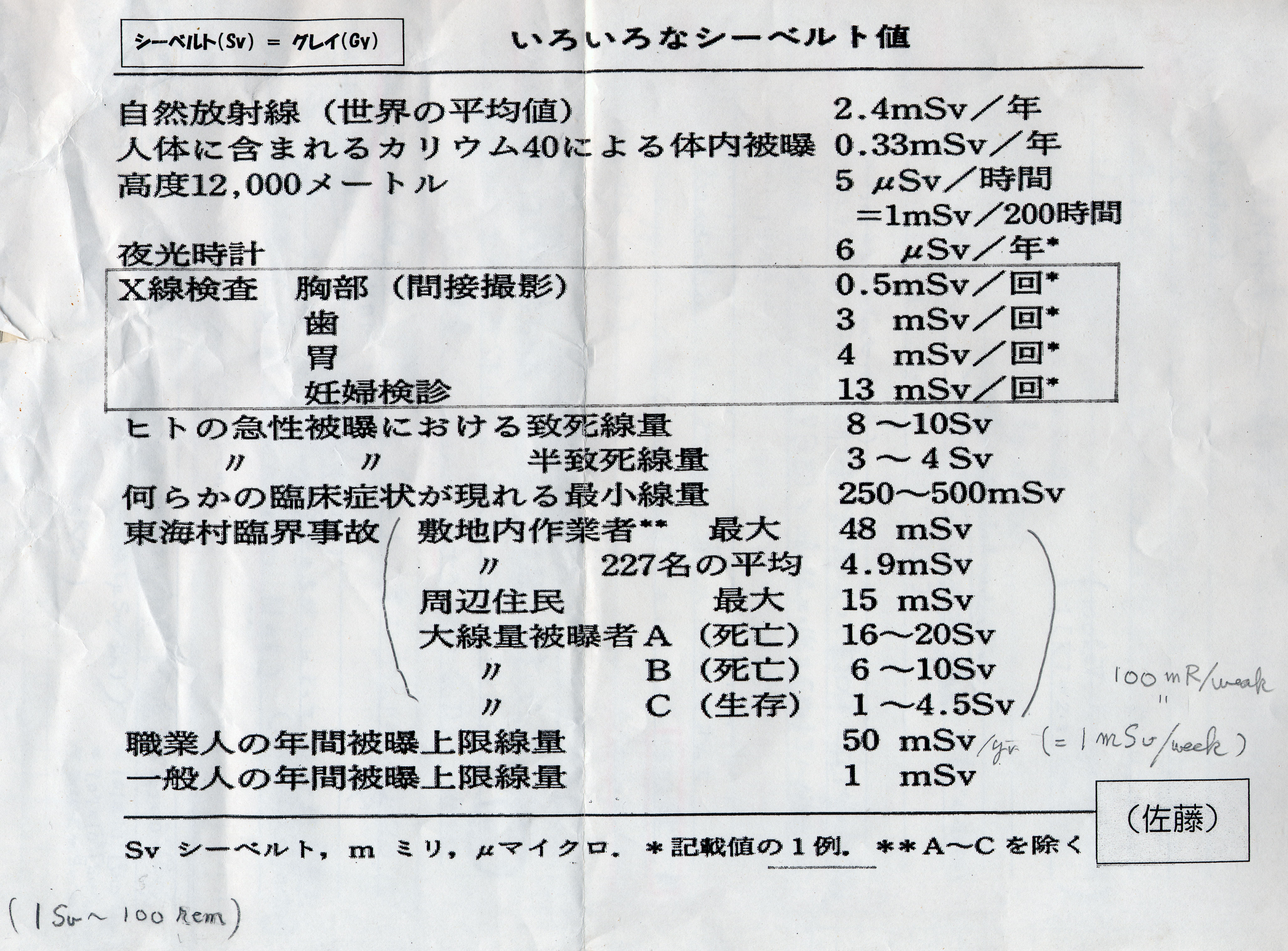 Svシーベルト、mミリ、μマイクロ *記載値の1例、**A~Cを除く