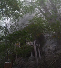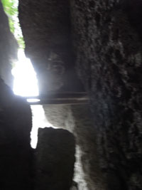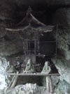 9/27 大天狗のお寺、迦葉山に行ってきました。天狗の面を1年間貸してもらいます。寺の裏から山道を20分ほど登ると岩に張り付いたような和尚堂が現れました。その横には巨大な岩が2つに裂けた不思議な裂け目があり鎖でその隙間を登って行くと祠が置かれていました。裂け目の裏手に回ると再び上の岩場に続くと思われる鎖があり靴ひもを結び直し登ろうとしましたが、一人だったので心残りではありましたが思い直してやめておくことにしました。 |