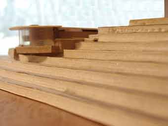 | バルコニーの家 市街部の家は狭い土地に縦方向に伸びることになりますが、その中でも様々な工夫をほどこして庭をできるだけ大きくとり、家の主要な部分を庭に接するようにして、大地に結びついた生活を実現するようにしています。 また、遠くの地平線を見る屋上テラスを持つことは、都市に住んでいてものびのびとした気分があります。 |
