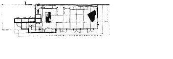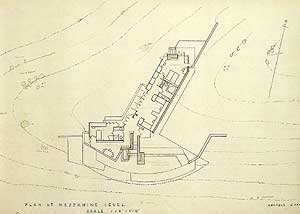 | Hill House 大きな片流れの屋根の下のダイニングとリビンクに個室が1列に連なっている典型的なユソニアンハウスのプランです。家は丘の頂上に置くのではなく、樹木や岩のように丘の一部になるように造ります。 |