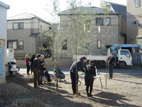 2006.12/10 地鎮祭 これから約半年間この現場に通うことになります。江戸の下町の情緒が残る場所で、歩いていける距離に名高い堀切菖蒲園があります。近所には紙や金属加工の工場が点在しています. |